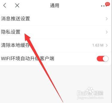 3.在通用设置中可以看到隐私设置的功能,点击进行设置.