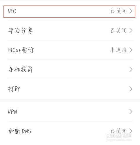 找到界面中NFC,点击进入。或下拉功能列表点击NFC直接进入。