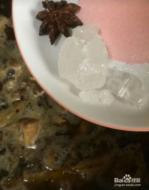 再加入冰糖,大料,盖锅盖,煮一个小时。