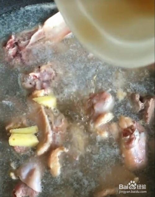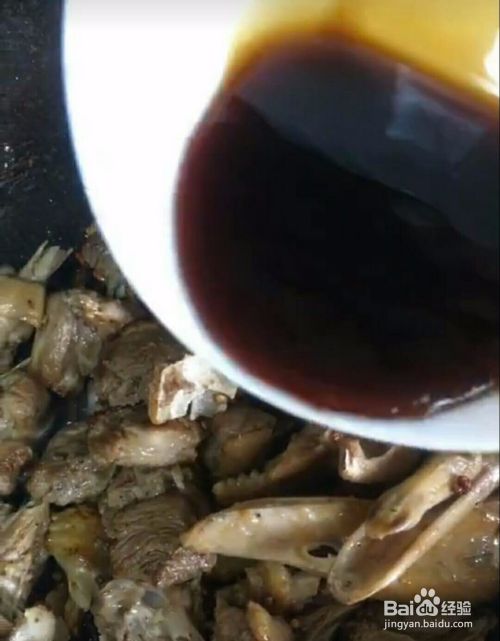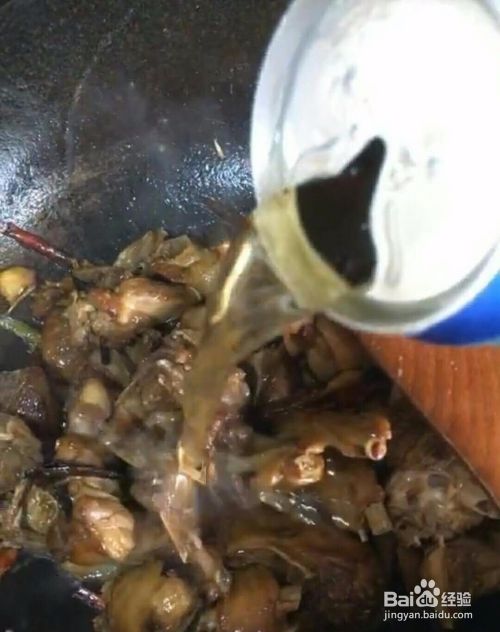 炒制变色加入啤酒,啤酒摸过鸭肉。