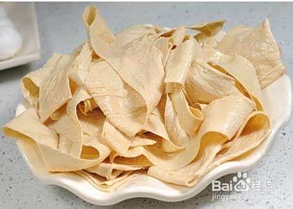 再准备一张干豆腐皮,把拌好的馅料铺满,尽量均匀。