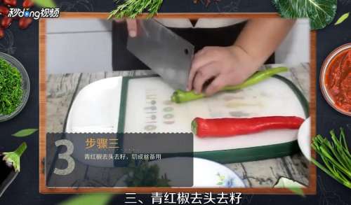 3青红椒去头去籽,切成丝备用,香菜切成小段,大蒜切成末备用。
