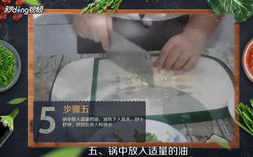 4锅中放入适量的油,油热后下入蒜末炒十秒钟,炒好后放入料碗。