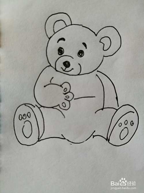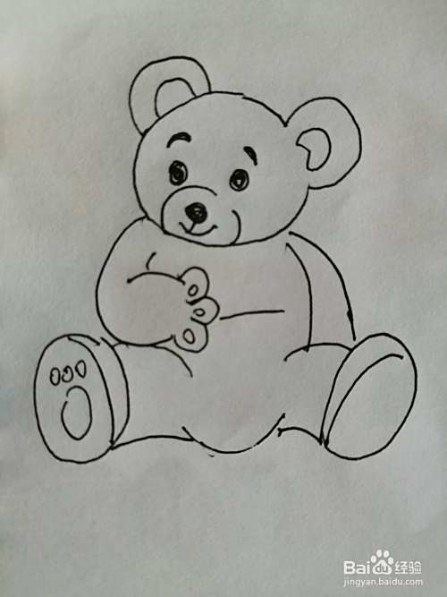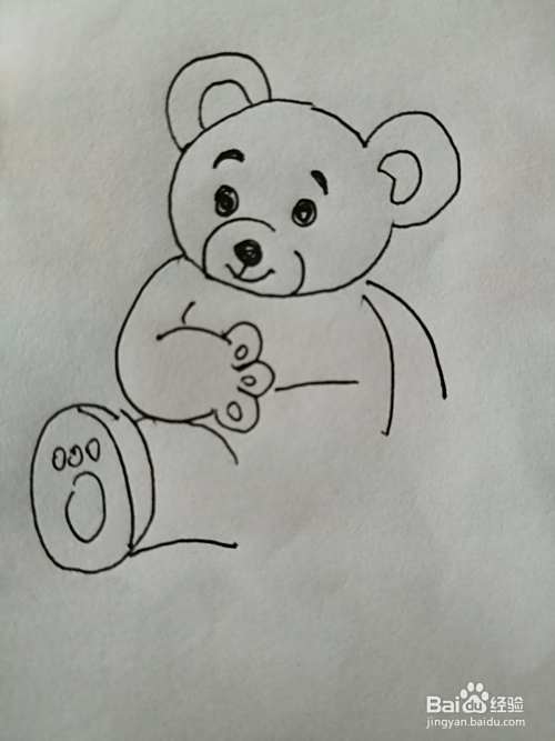 第七步,最后把可爱的小熊到右边的腿也画出来,可爱的玩具小熊就画好了。