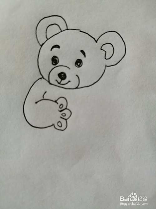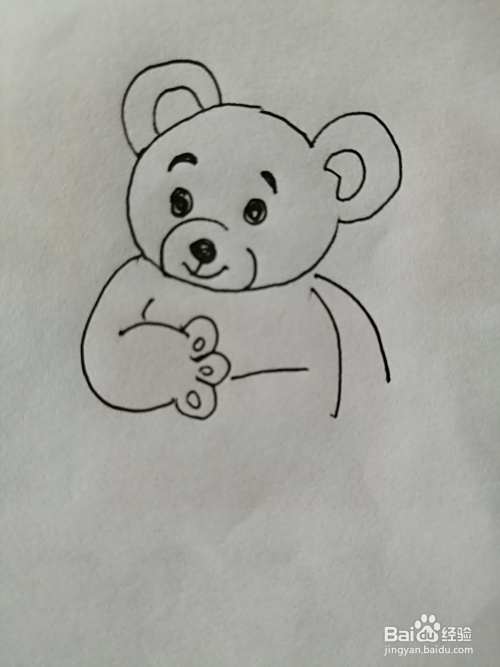 第五步,接着把可爱的玩具小熊的小手画出来,注意手部细节的画法。