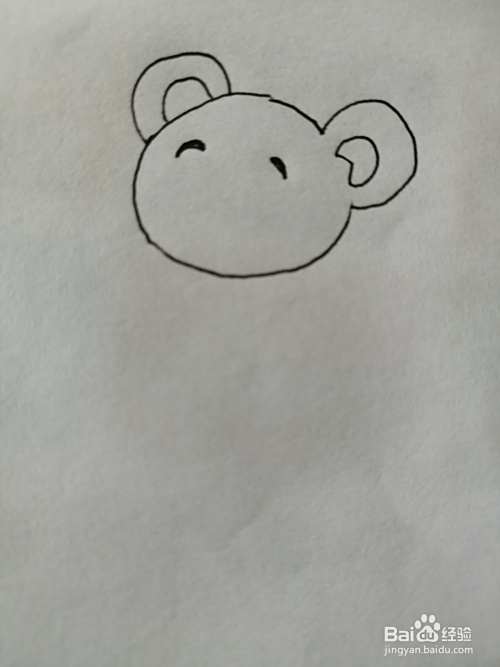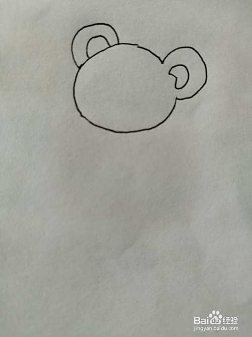 第二步,接着在可爱的小熊的头部上面画出两只耳朵,注意耳朵细节的画法。
