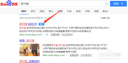 用Chrome浏览器打开百度并搜索“支付宝”并打开