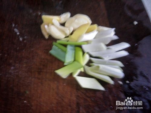 老姜切片,大蒜去皮后切碎,大葱洗干净,切段备用。