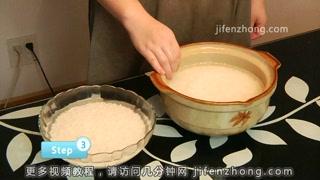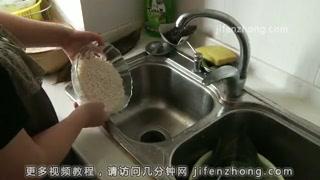 2取一容器,加入适量糯米,用清水淘洗干净。