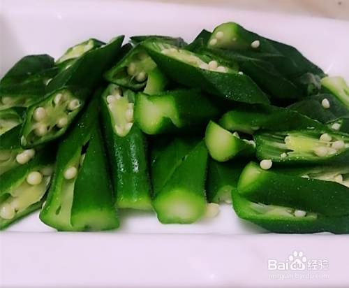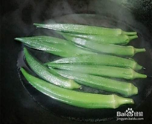 先把秋葵洗干净,再放在开水中焯一下水,记住不要切开了再下去焯水,因为会切开了再放下去会流失不少营养。