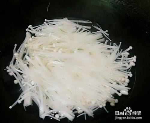 把金针菇切掉老根再洗干净泥沙,再放在滚水中焯下水,就是水再次开立马捞出来控水。