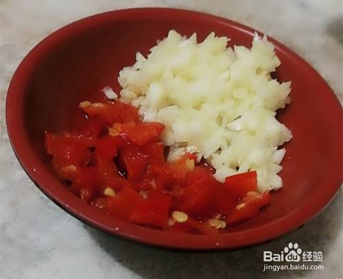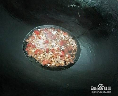 把大蒜籽去皮切碎,红椒去籽也切碎,再放油,再烧成热油备用。