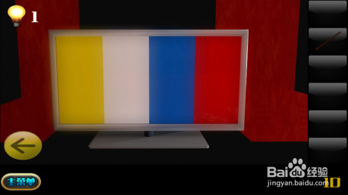 紧接着,将电池放入遥控器,用遥控器打开电视机,获得颜色密码信息,黄白蓝红,将颜色密码输入书柜旁的密码盒,得到多功能工具一把。