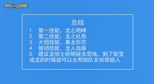 5建议龙骑士前期就去混线,到了能变成龙的时候就可以去帮助队友拆塔捉人。