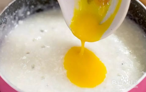 倒入蛋黄搅拌均匀,一直煮到熟了就可以盛出来了,冷却就可以吃啦。