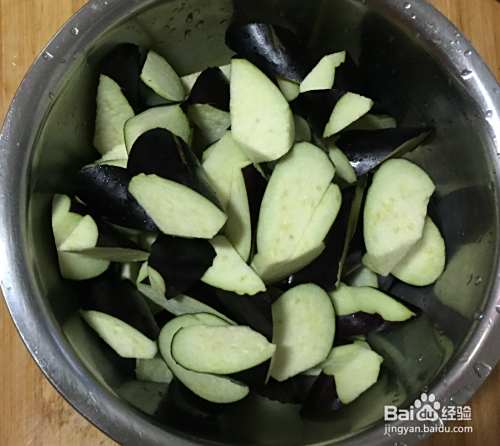 首先茄子洗净切块。
