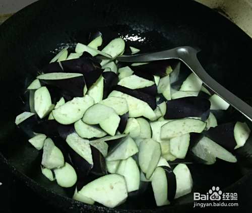 倒入茄子翻炒。