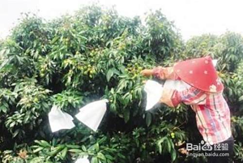 对荔枝果实进行无纺布套袋,可以进一步防治蛀虫