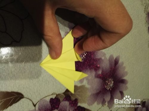 最外面的左右两侧纸向内折,然后再留一段向内折,最下方的尖角向上折。