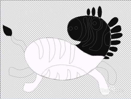 这一步来填充斑马身上的黑色花纹,我们填充出斑马的花纹效果。