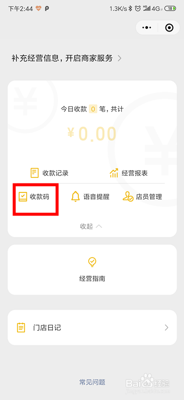 我们点击二维码下方的收款小账本,进入小账本界面。