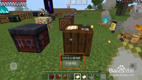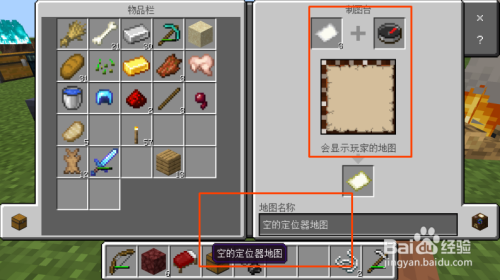 进入到制图台中,在右边第一格中放入纸,第二个放入指南针,合成空白定位器地图