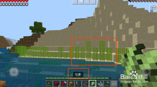 打开我的世界手游,进入游戏局内,去到河边寻找甘蔗,河边通常都有甘蔗,可以多收集一些,自己种植