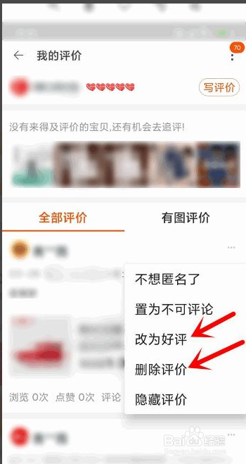打开手机淘宝,进入我的页面选择我的评价,点击要删除的评价进行删除或改好评即可。