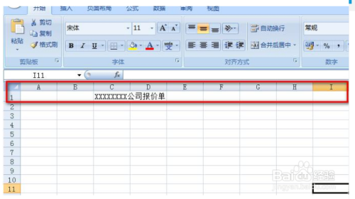 2、在Excel表格第一行里面输入报价单标题,见下图。