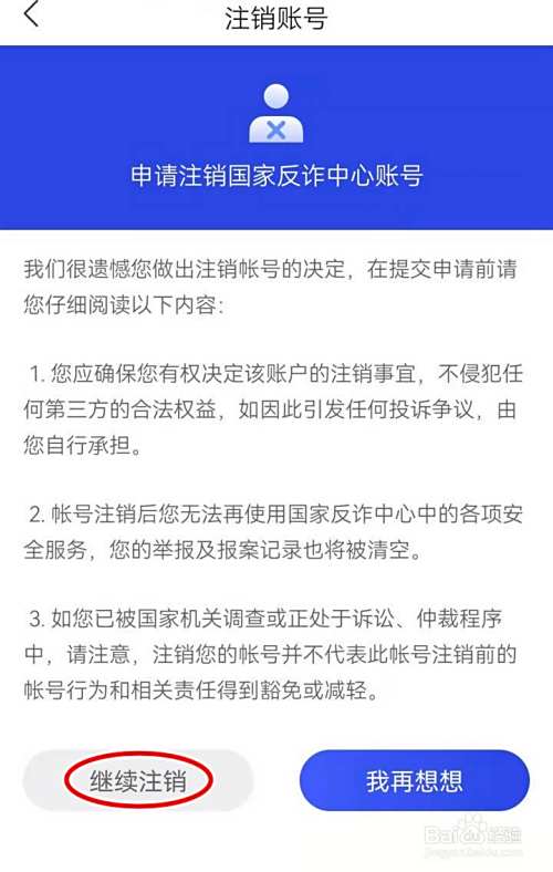 进入注销账号页面,有详细说明,点击继续注销完成申请;