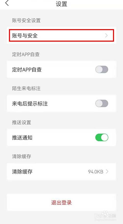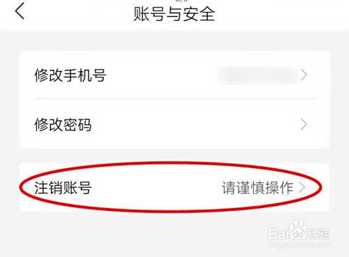 进入账号与安全页面,三个项目,点击注销账号;