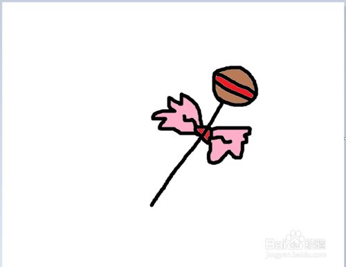 教小朋友画带蝴蝶结的棒棒糖。