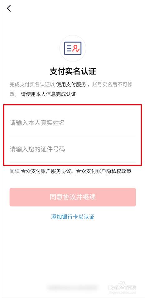 打开“支付实名认证”界面后,即可进行实名认证操作。见下图