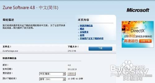 我们需要从微软官方网址下载得到最新的4.8版本的ZUNE安装包