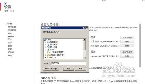 进入到ZUNE的设置界面,在“软件”项目的“收藏”设置中,可以设置ZUNE的多媒体收藏文件夹位置,当将新文件被添加进来之后,ZUNE会自动将文件夹内所有媒体文件添加收藏。这时候只需要返回ZUNE的主界面,就可以看到新添加的多媒体文件了