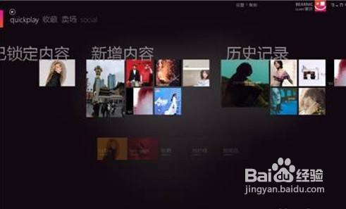 在进入到ZUNE的主菜单界面之后,我们发现ZUNE的用户界面采用了和微软Zune HD多媒体播放器以及Windows Phone相同的Metro UI界面。运行Zune软件,首先进入的是QuickPlay界面,在这个界面,主要分为上、中、下三个部分。