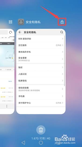 结果如图所示,这样便锁定了打开的该应用,我们可以看到上方有个小锁的图标;