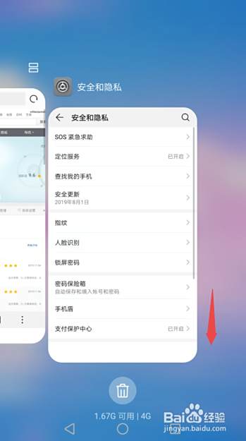 5、想要取消锁定打开的应用的话,我们只需要再朝下滑动然后松手就可以取消了。