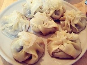 烧卖用烫面,即用开水和面,面已半熟,再加入冷水和的面,以增加成型能力,用一种中间粗,两头有把的类似棒槌的特殊擀面杖擀皮,擀出的皮薄而不平,四边如同花边,中间放馅,不用包,一提就成型,上屉蒸熟。皮薄馅大,形若杯,底为圆,腰收细,上面如同花边,美观好吃。烧卖馅料多为糯米、香菇、萝卜、白菜、瘦肉等,加入调味的酱油、 盐、香油 、食用油、白糖。吃时配以醋、蒜丝,味道可口、鲜美。