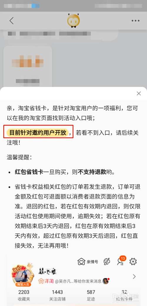 淘宝省钱卡开通不了的原因