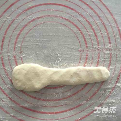 3发好的面团排气揉匀,分4份,每份搓成一头窄一头宽的长条