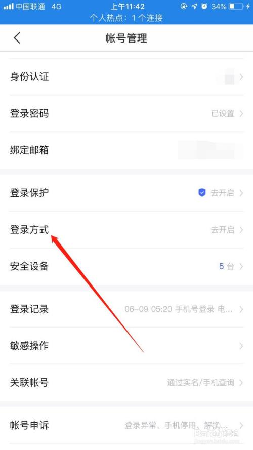接着点击“登录方式”。
