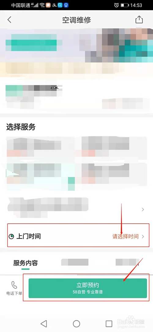 最后填写上门服务时间,在点击【立即预约】,等待维修人员上门就可以解决空调外机漏水的问题了。