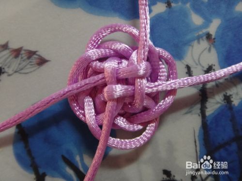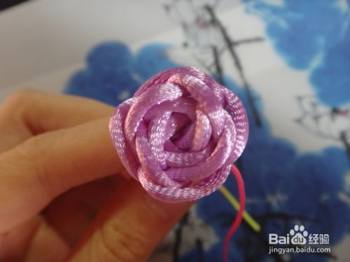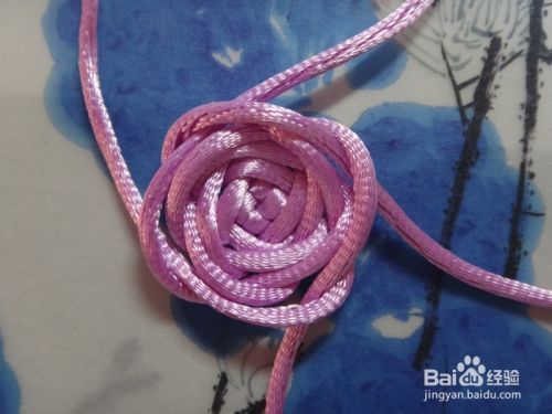 打第二个吉祥结,注意方向,要像圆玉米秸那样,这样编出来的玫瑰才会圆润,有花瓣的效果