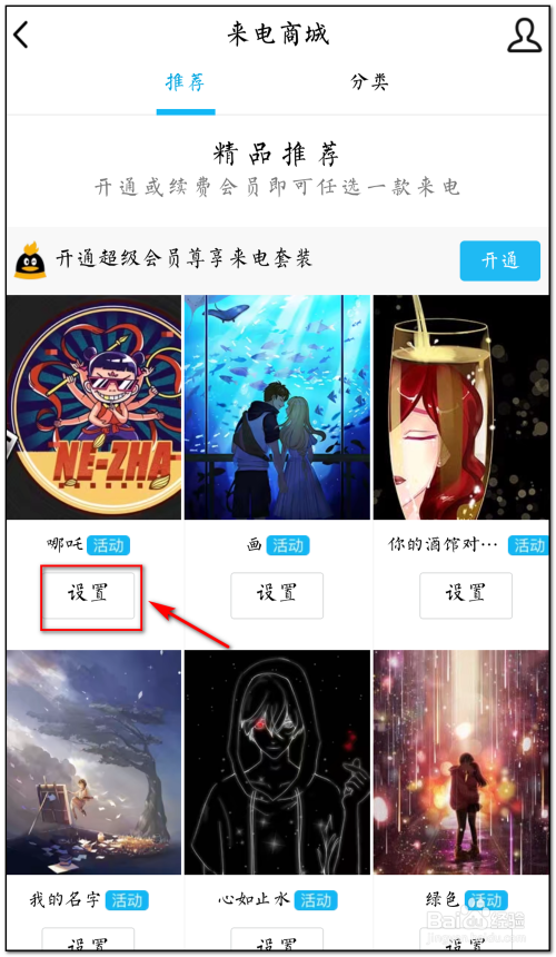 在个性装扮界面点击“来电”