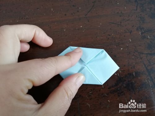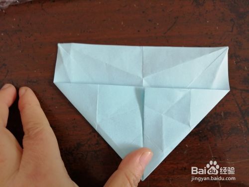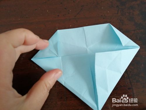 2把上边两侧的角也向内折,然后,再把上边向下折,如图二。