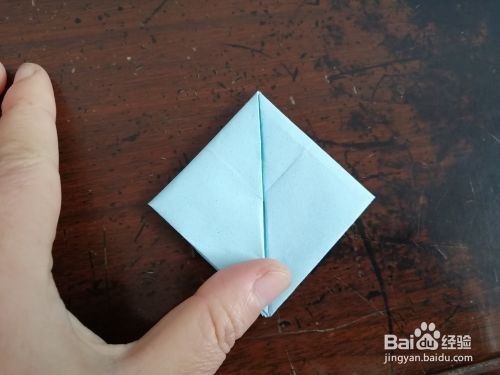 4然后,再把彩纸从中间对折,把对角线斜折,如图二的样子。