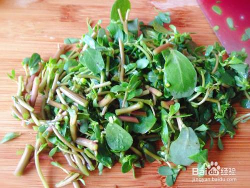 先将马齿苋摘去老梗后清洗干净,控干水分后用刀切成小段。