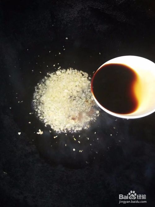 然后热锅将油倒下,等油沸了倒蒜再倒酱油,等它们在油里爆香,关火