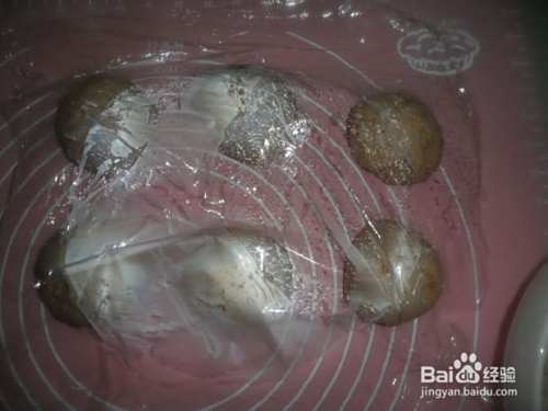 发酵好的面团,用手掌压出气体,将面团分成6份,揉圆,盖上保鲜膜中间醒发15分钟